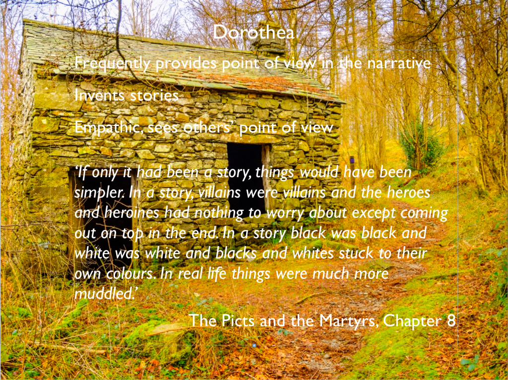 Dorothea spends much of her time in Winter Holiday wanting to be useful but, although she and Dick are better than the others at skating, she struggles at first to find an active role. However, as a kind of proxy narrator, she helps to open up the characters of all the others. The same might be said of her part in both PigeonPost and The Picts and the Martyrs. This latter book is almost entirely told from her point of view, with only brief episodes from Dick’s and Nancy’s, and her insight and ability to see things from others’ perspective makes her, at times, seem more mature than the (two years older) Nancy.